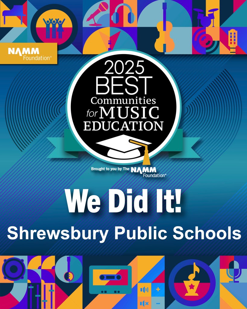 Shrewsbury Public Schools has received national recognition by the NAMM Foundation as one of the “Best Communities for Music Education” for 2025 and 2024!
